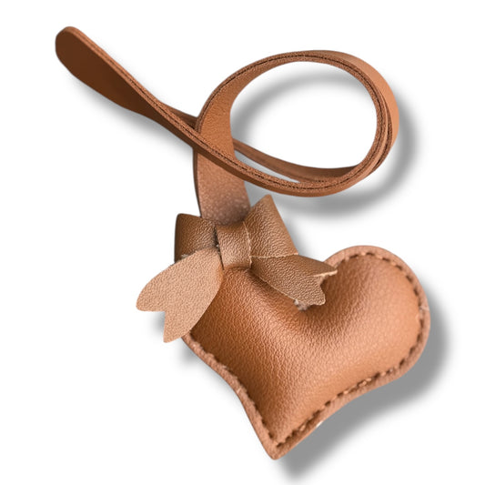 Heart Faux Leather Bag Charm – 8” Hanging Accessory with Bow Detail