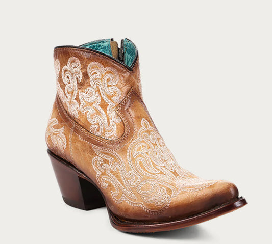 Corral Women's Straw Brown with Luminescent Embroidery Snip Toe Cowboy Boots