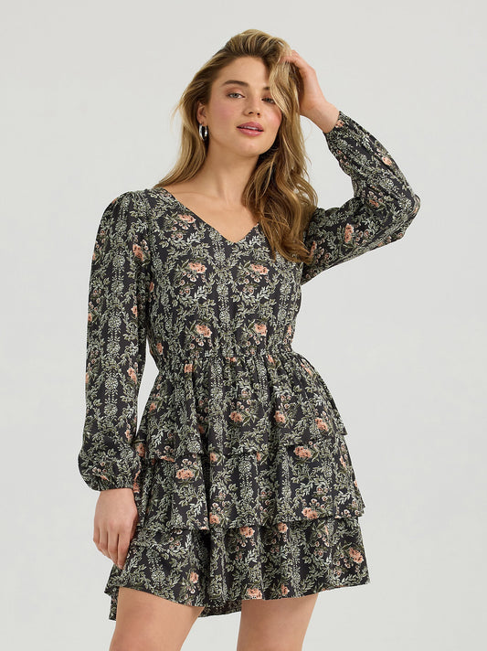 Women's Wrangler® Retro® Vintage Tiered Long-Sleeve Dress in Rose Black