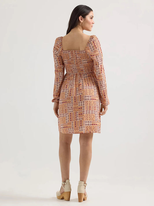 Women's Smocked Bodice A-Line Dress in Geo Orange