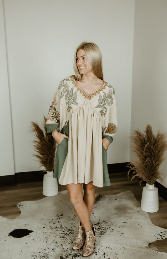 Sold outEmbroidered Poly Linen Woven Dress