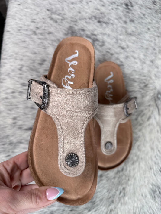 Santa Fe Daisy Leather Tooled Slide Sandals