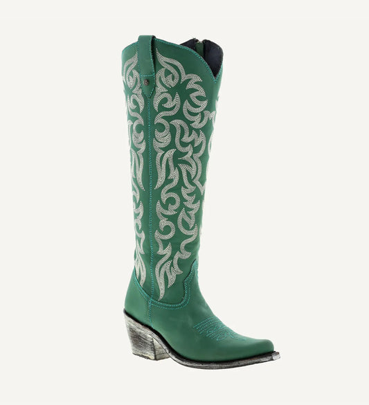 Corral Woman's Wide Square Turquoise Embroidery Boots