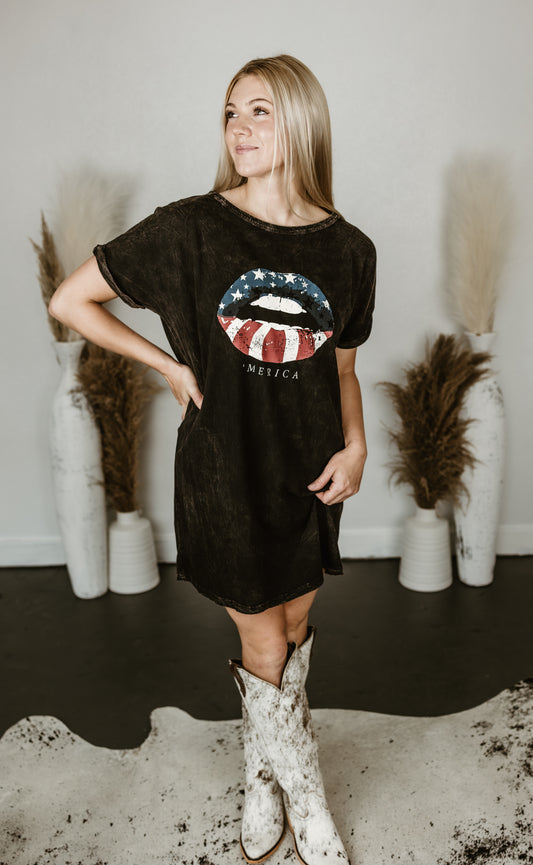 Sold outMerica Lips Graphic Tee Shirt Dress