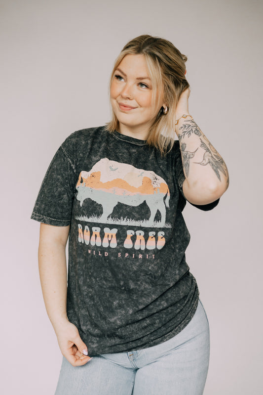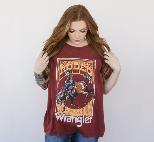 Women's Wrangler Acid Wash Graphic Oversized Tee – Retro Western Style Meets All-Day Comfort