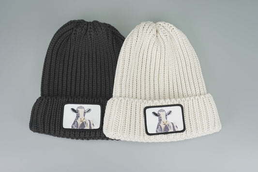 Cuffed Moo Moo Cow Embroidered Patch Knit Beanie