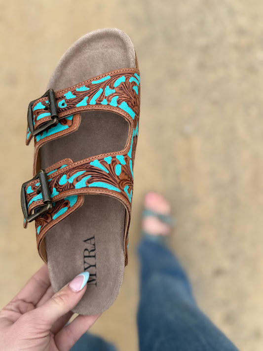 Turquoise Wildflower Wanderer Leather Tooled Sandals