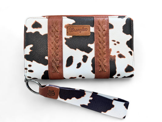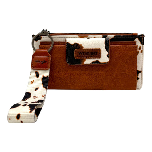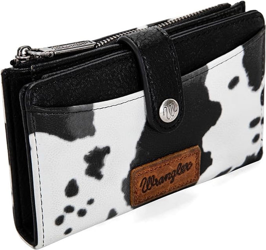 Wrangler Cow Print Bi-Fold Wallet Wristlet with Embossed Logo