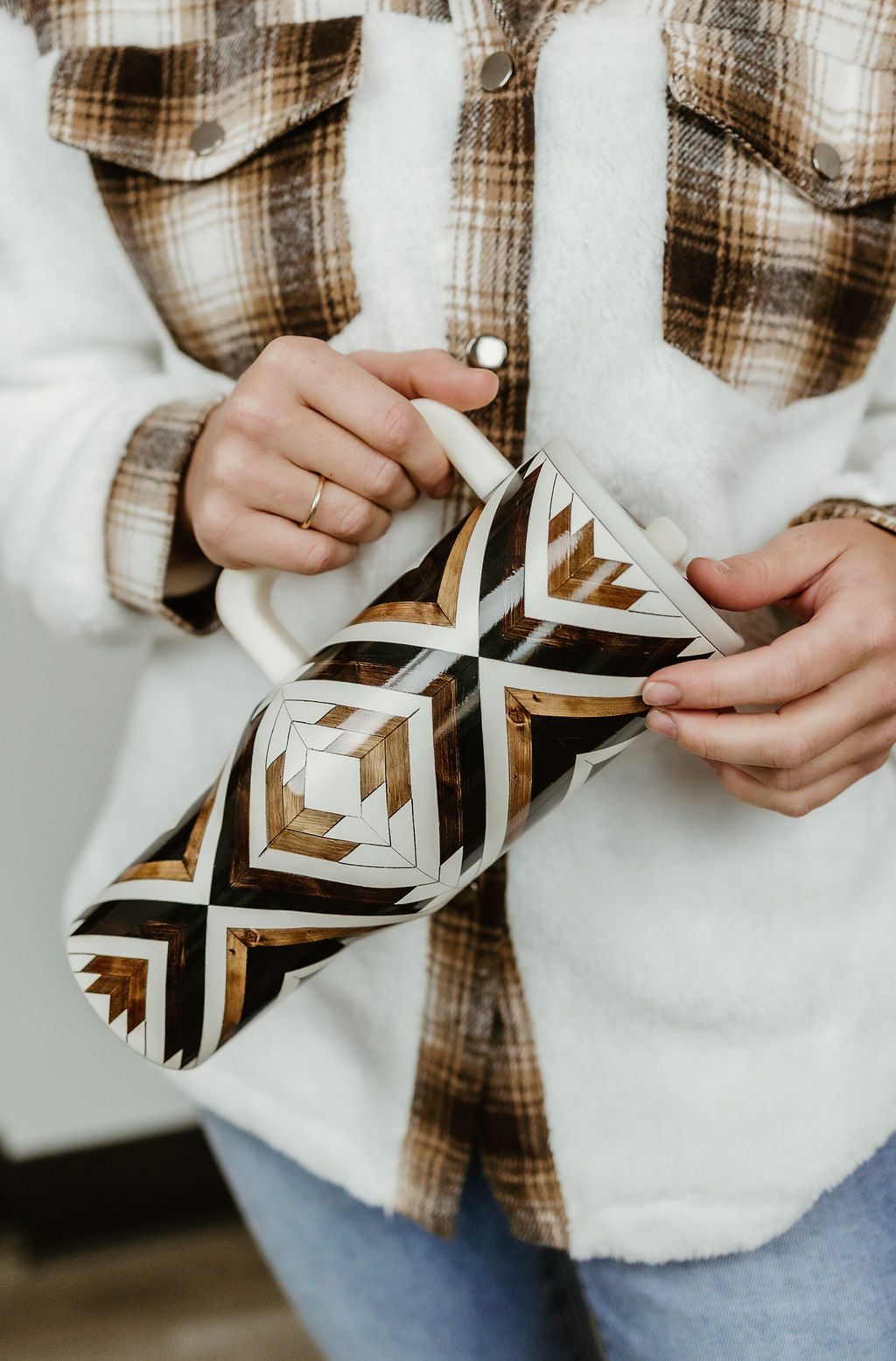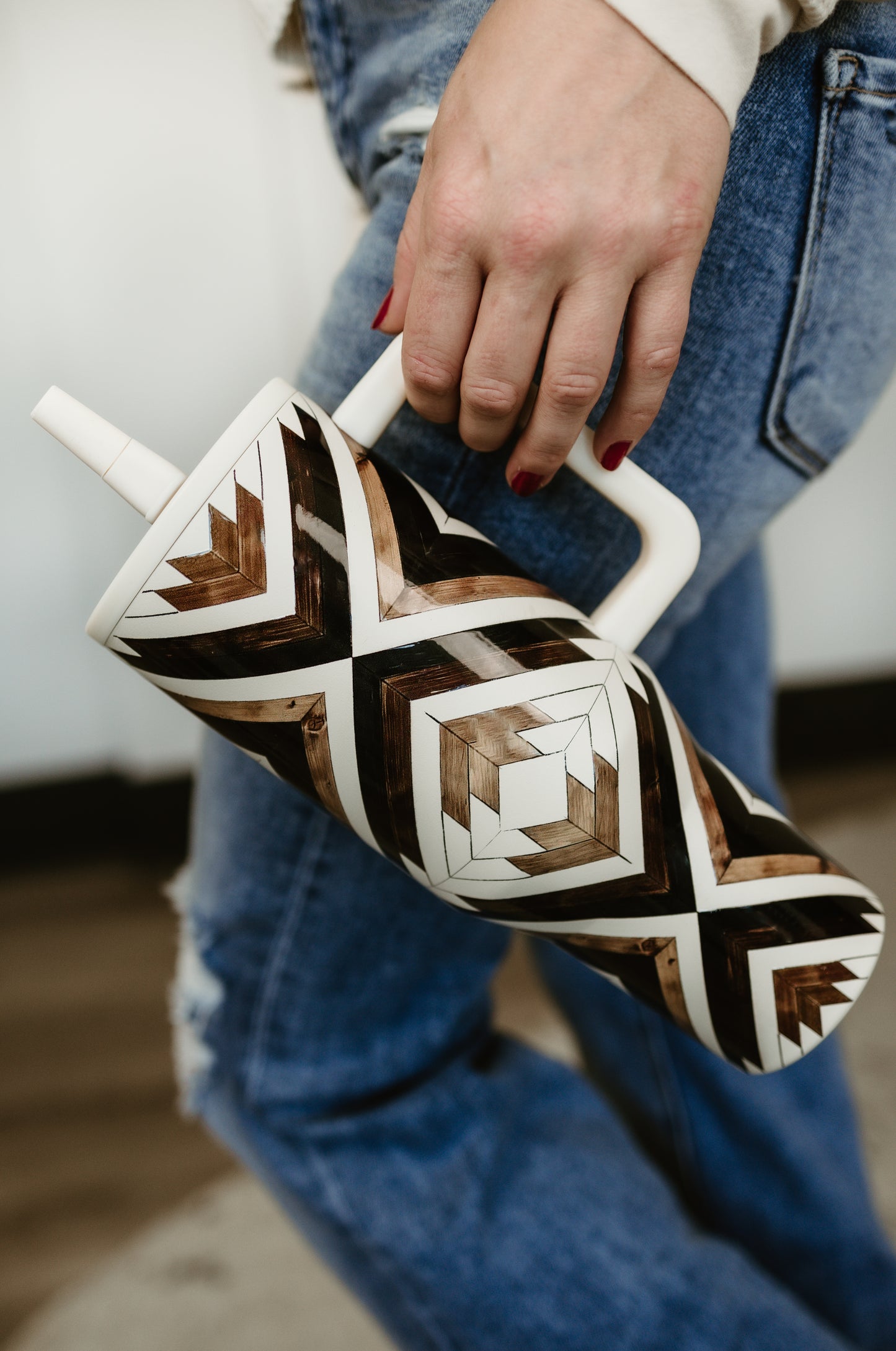 Perfect for those who appreciate a blend of rustic charm and modern functionality, the Desert Chevron Western Tumbler is your reliable partner for staying refreshed throughout the day!
