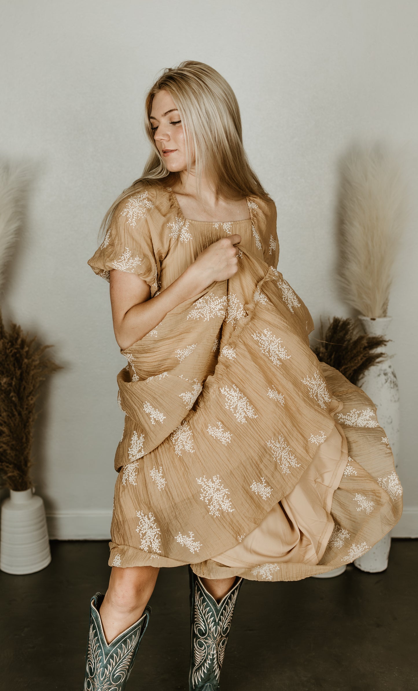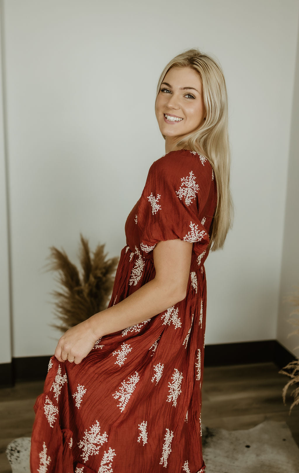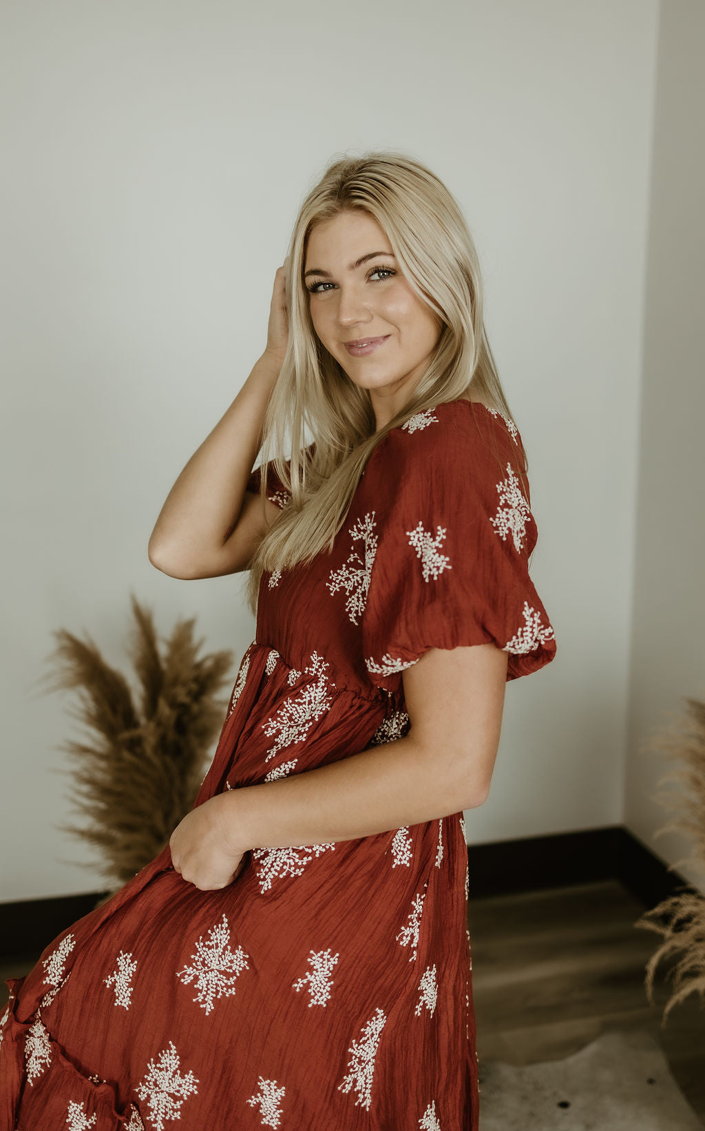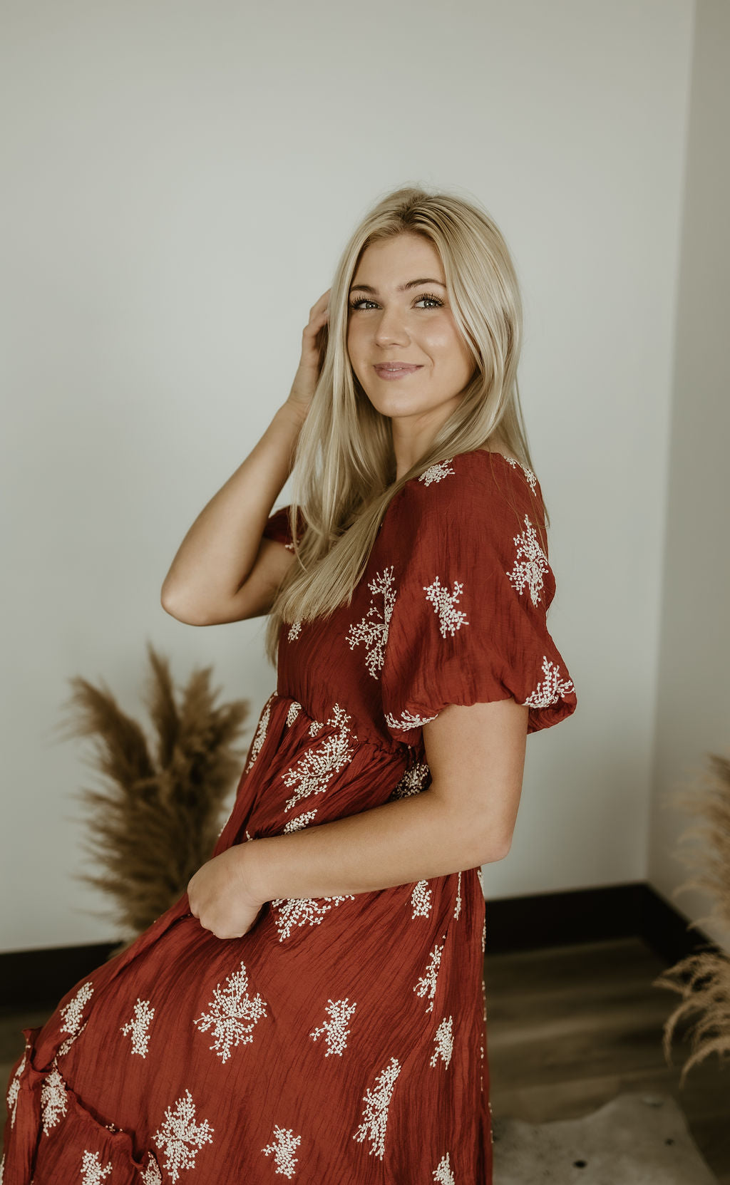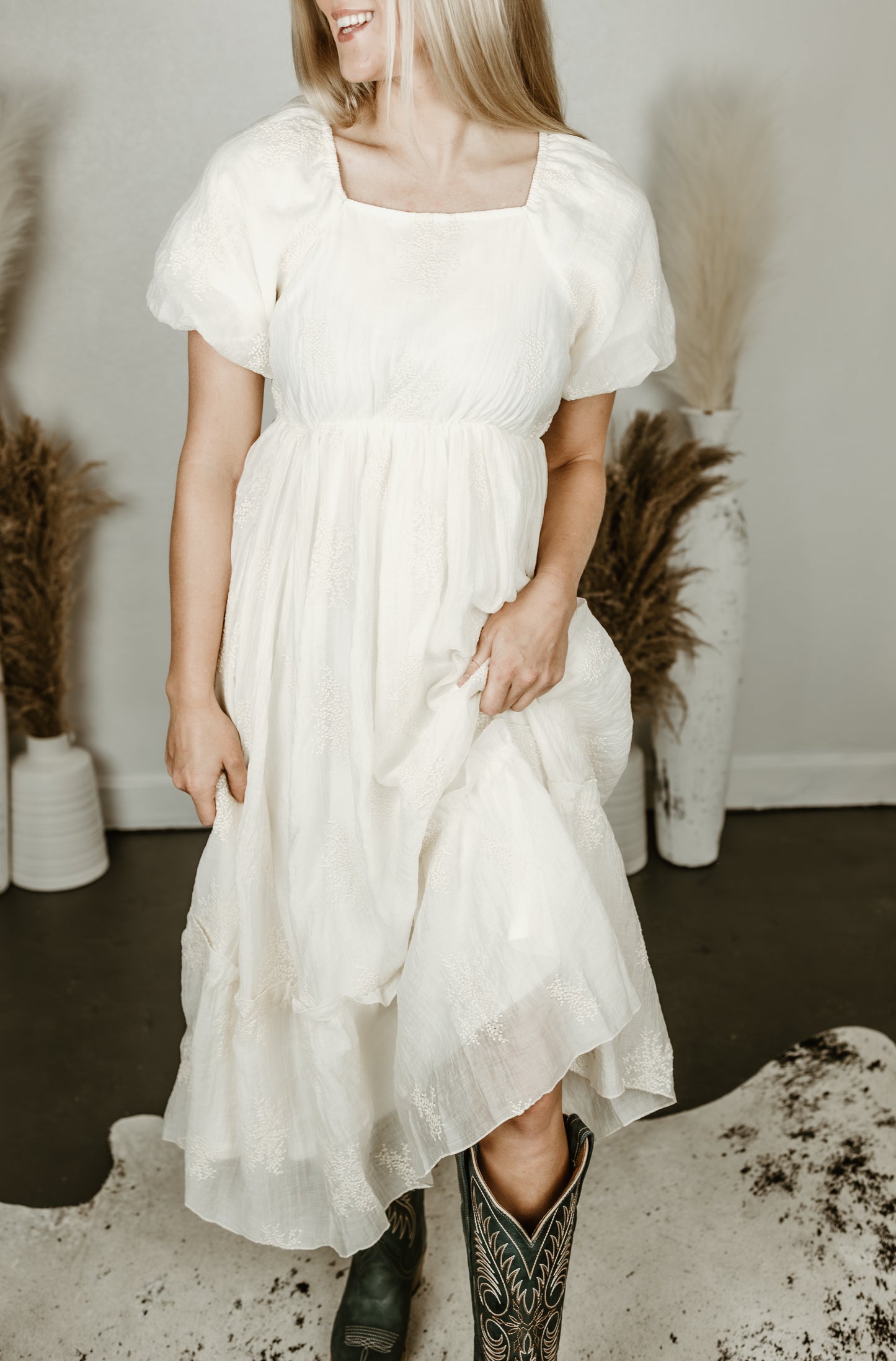 This embroidered sleeve maxi dress features a square neck and short sleeves for a stylish and comfortable fit. Made with a blend of 80% polyester and 20% Tencel, this dress offers both durability and softness. Perfect for any occasion, this dress is a must-have for your wardrobe.