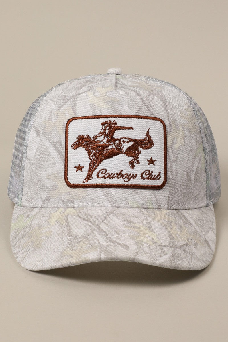 Detailed Cowboy & Horse Embroidery: Eye-catching patch design featuring a cowboy riding a bucking horse with “Cowboys Club” lettering.