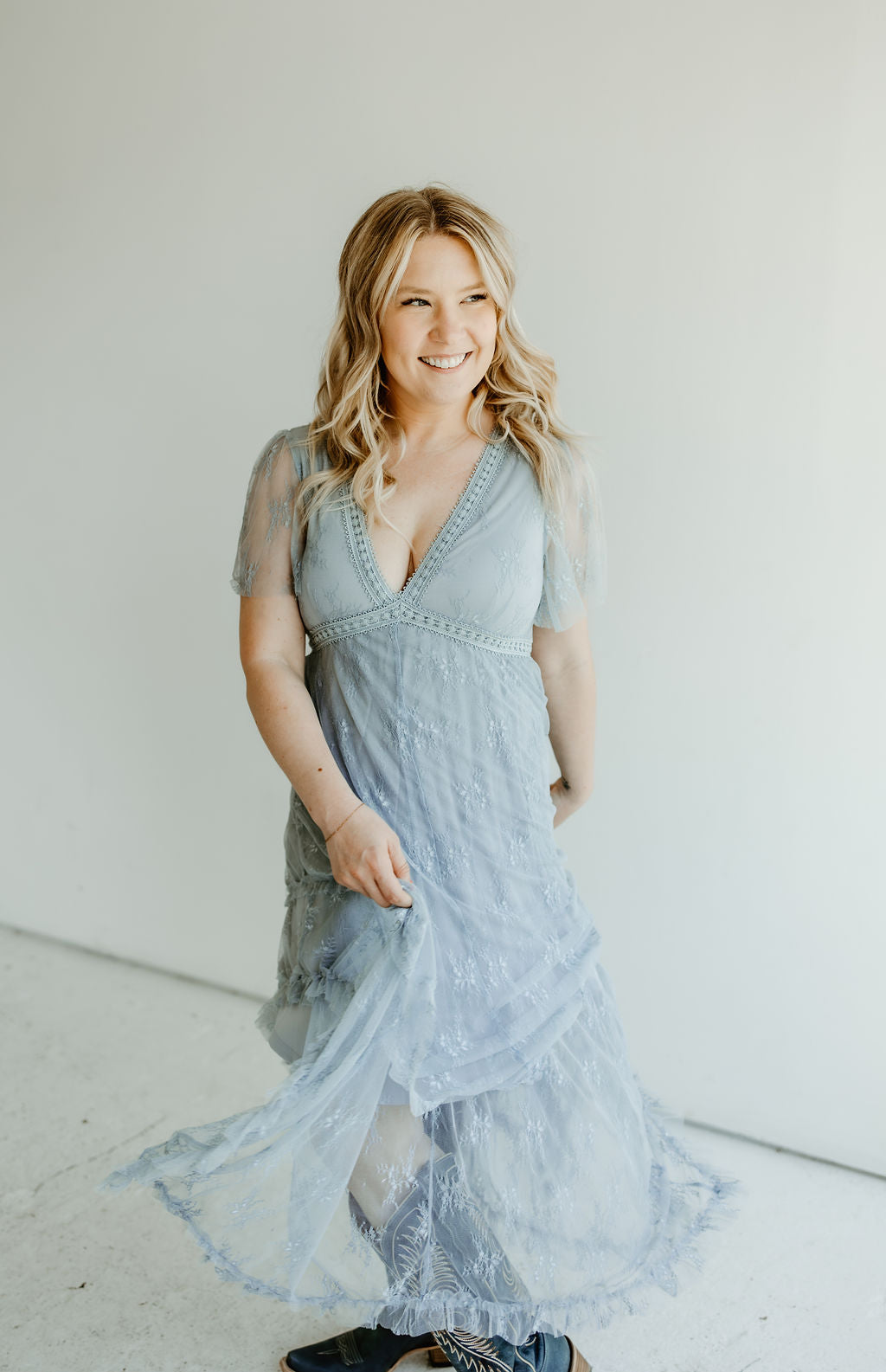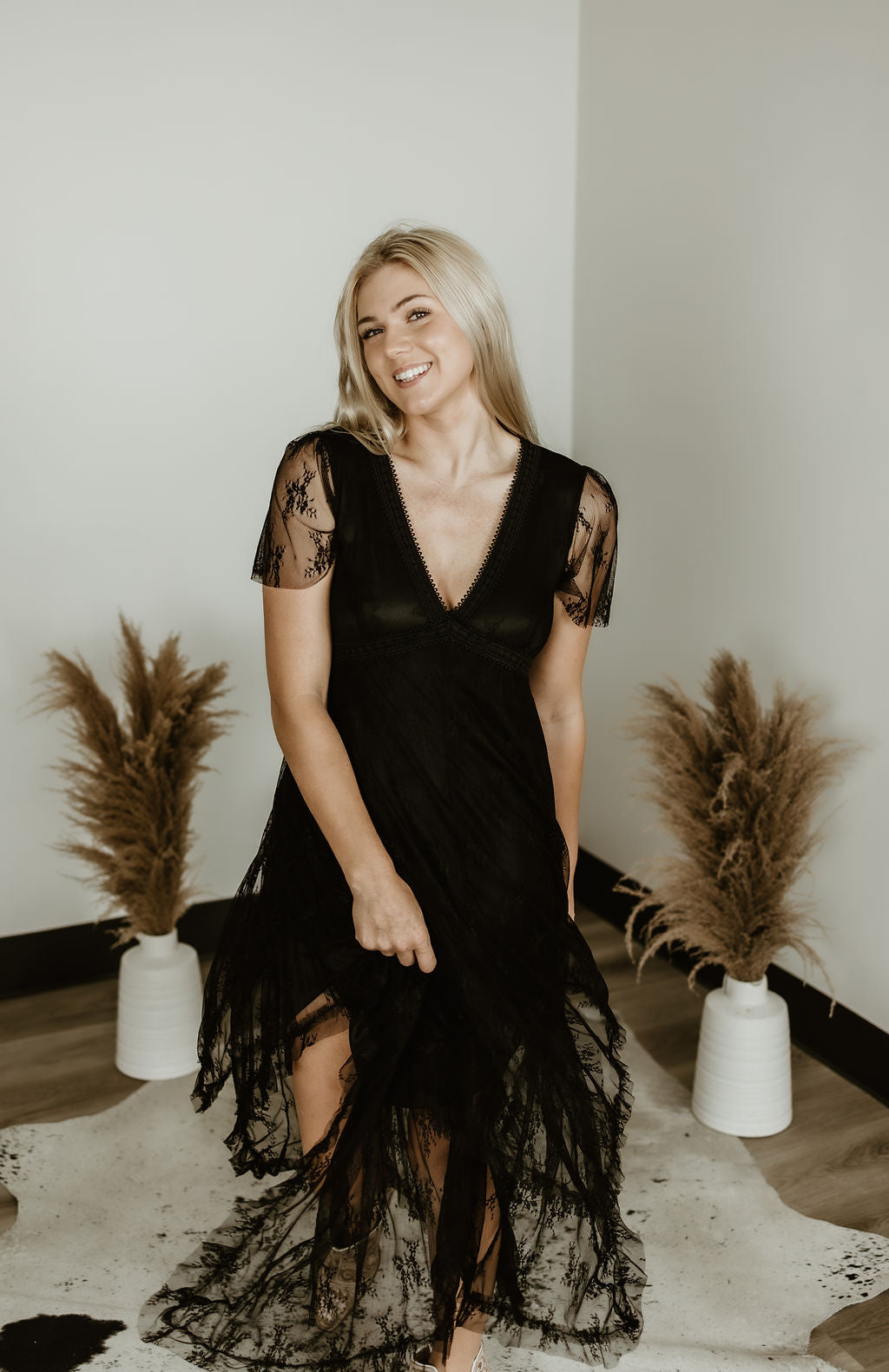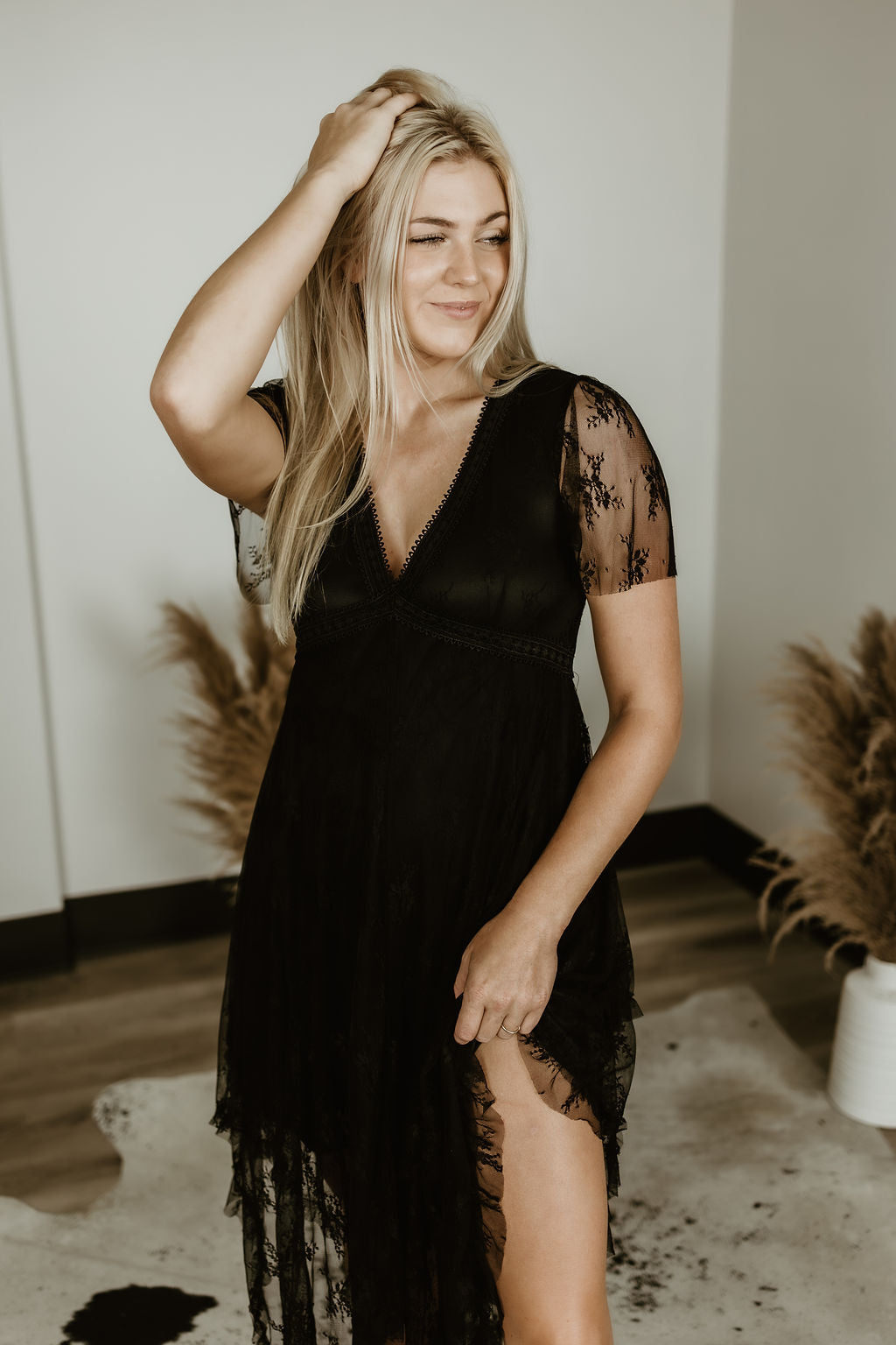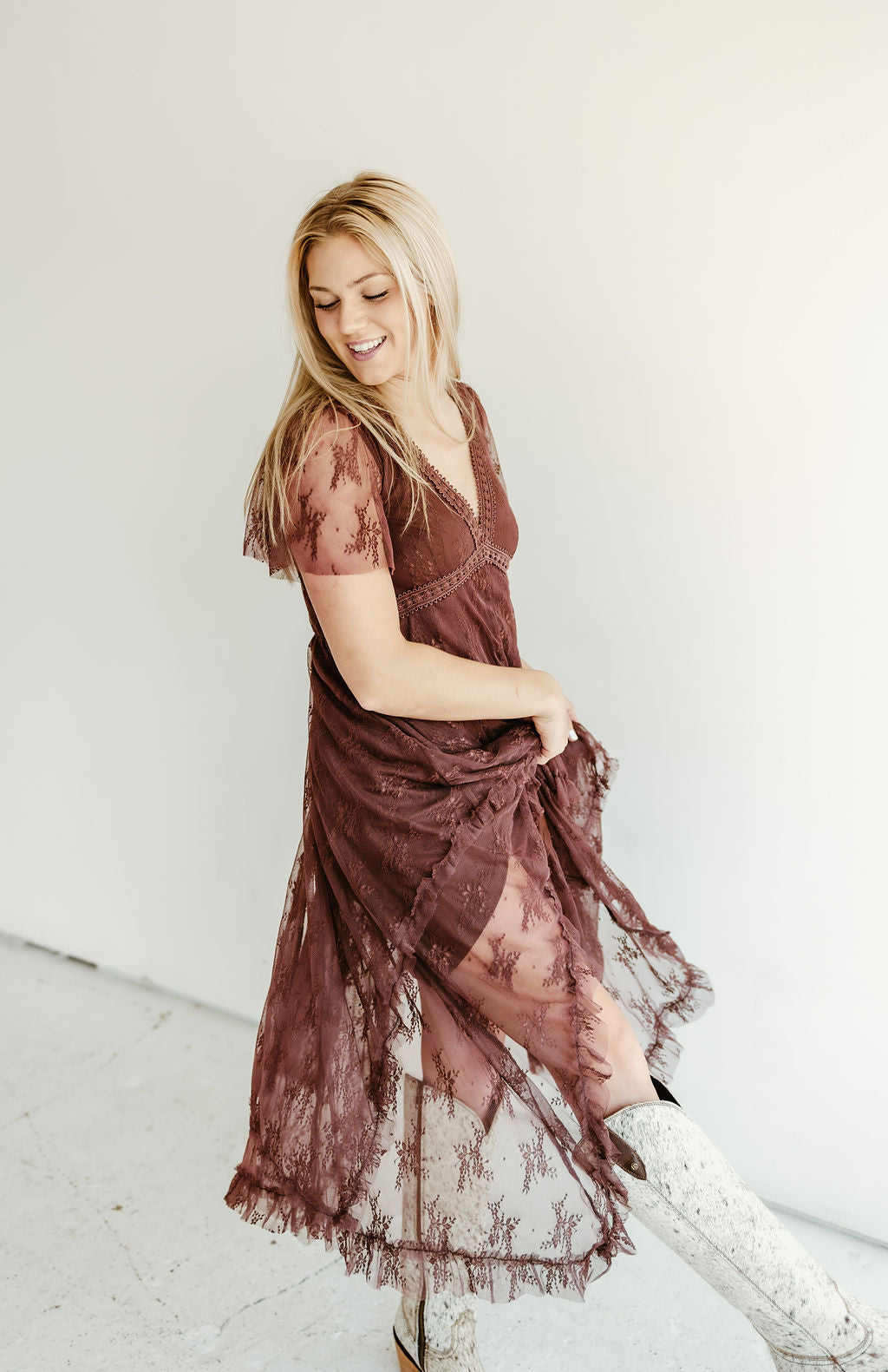 This maxi dress features a deep V-neck and short sleeves, made from a fabric blend of 90% nylon and 10% spandex. Its boho western style pairs perfectly with cowgirl boots. Elevate your wardrobe with this embellished lace hem dress.