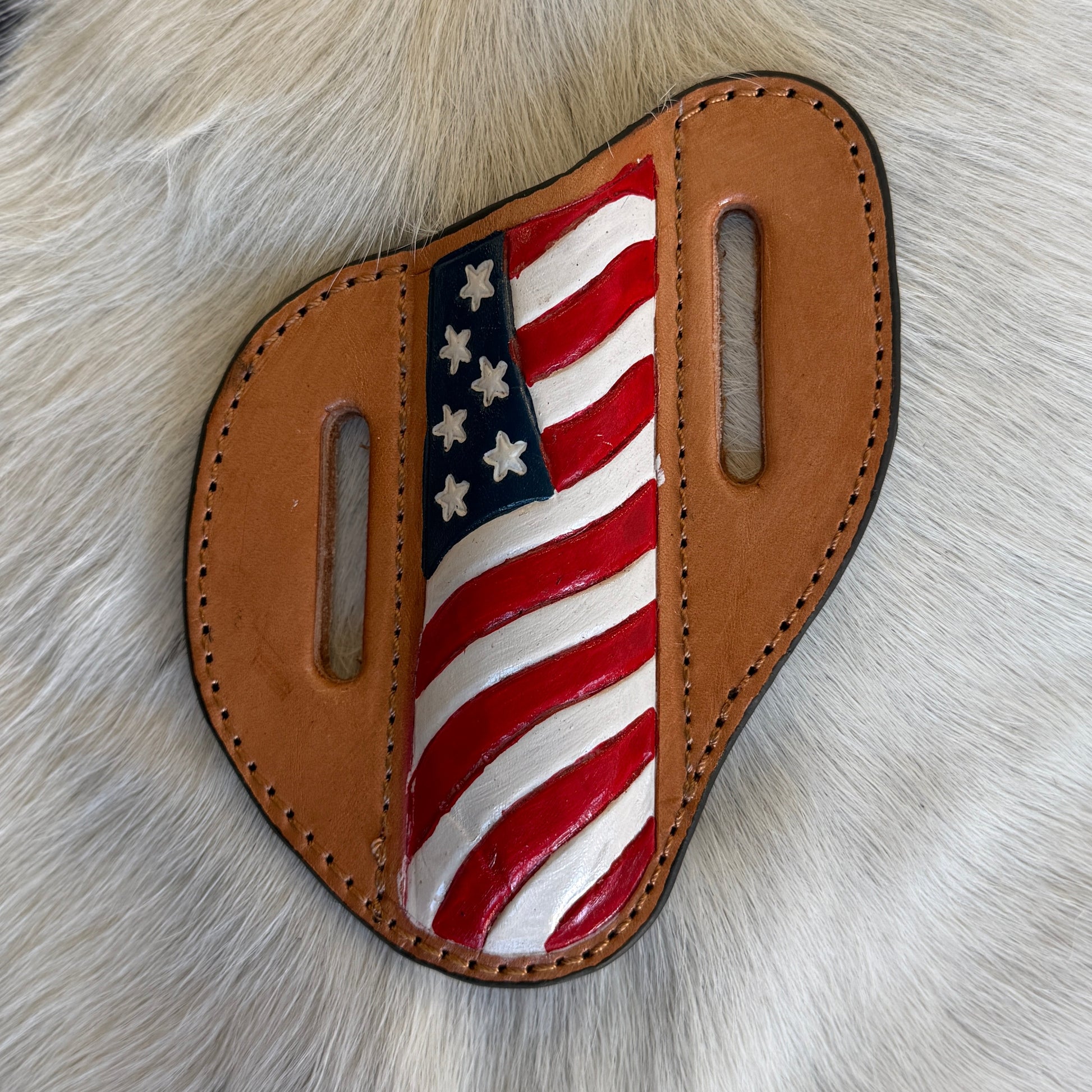 Crafted to securely hold a 4" Case Trapper–style folding pocket knife, this sheath is built for everyday wear while still standing out as a statement piece. The angled belt slots are designed for right-side wear, allowing the sheath to sit comfortably and naturally on your belt.
