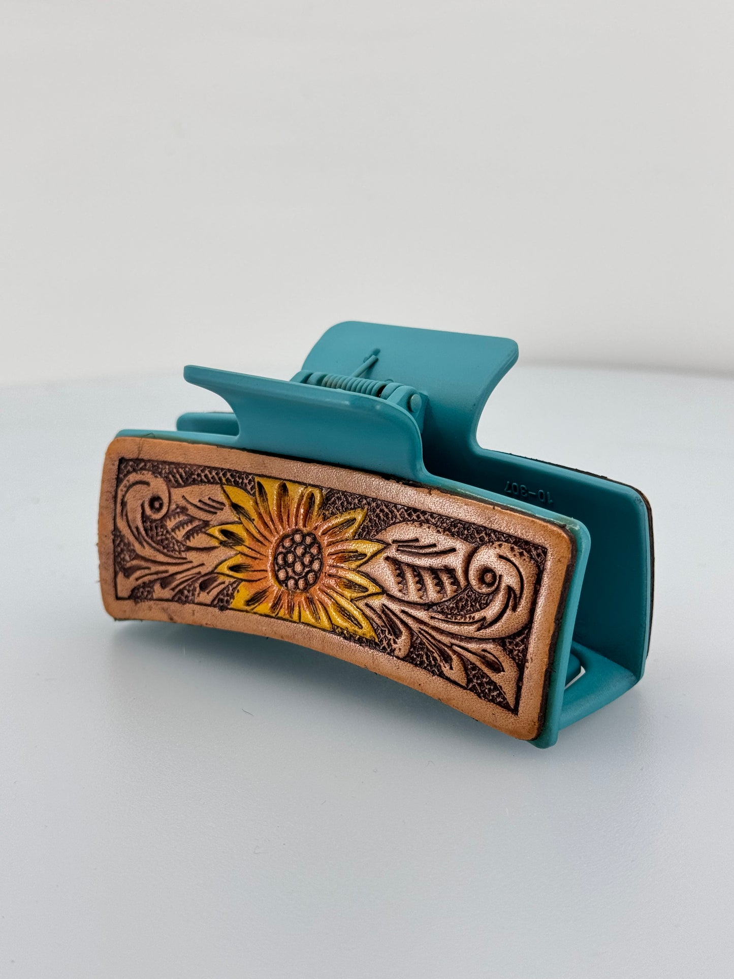 Large Leather Tooled Sunflower Hair Claw Clip