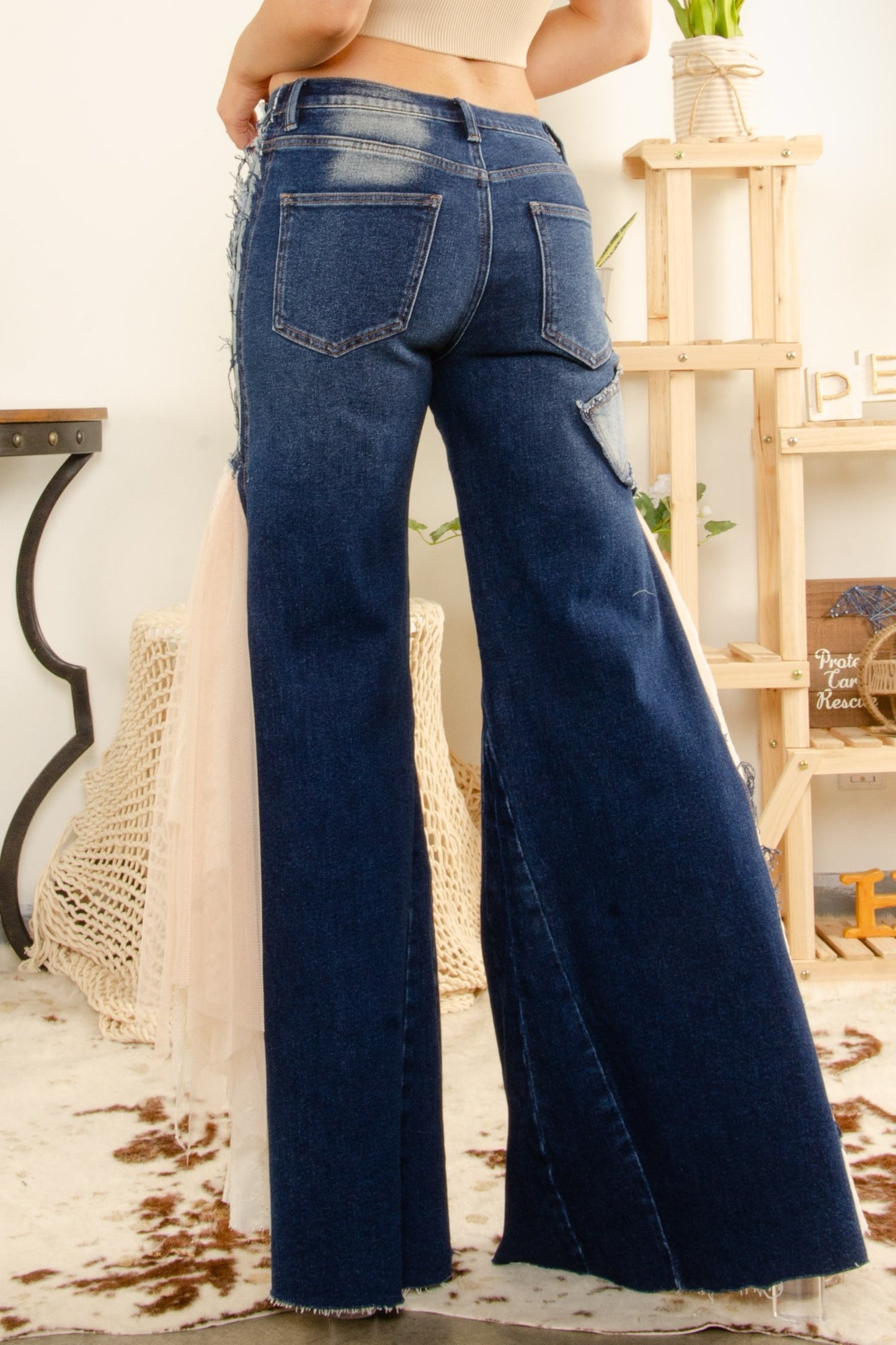 Slip into a playful concert outfit with these Stretchy Denim Flare Jeans! Cute and unique with mesh detailing, these jeans are stretchy and true to size for maximum comfort.