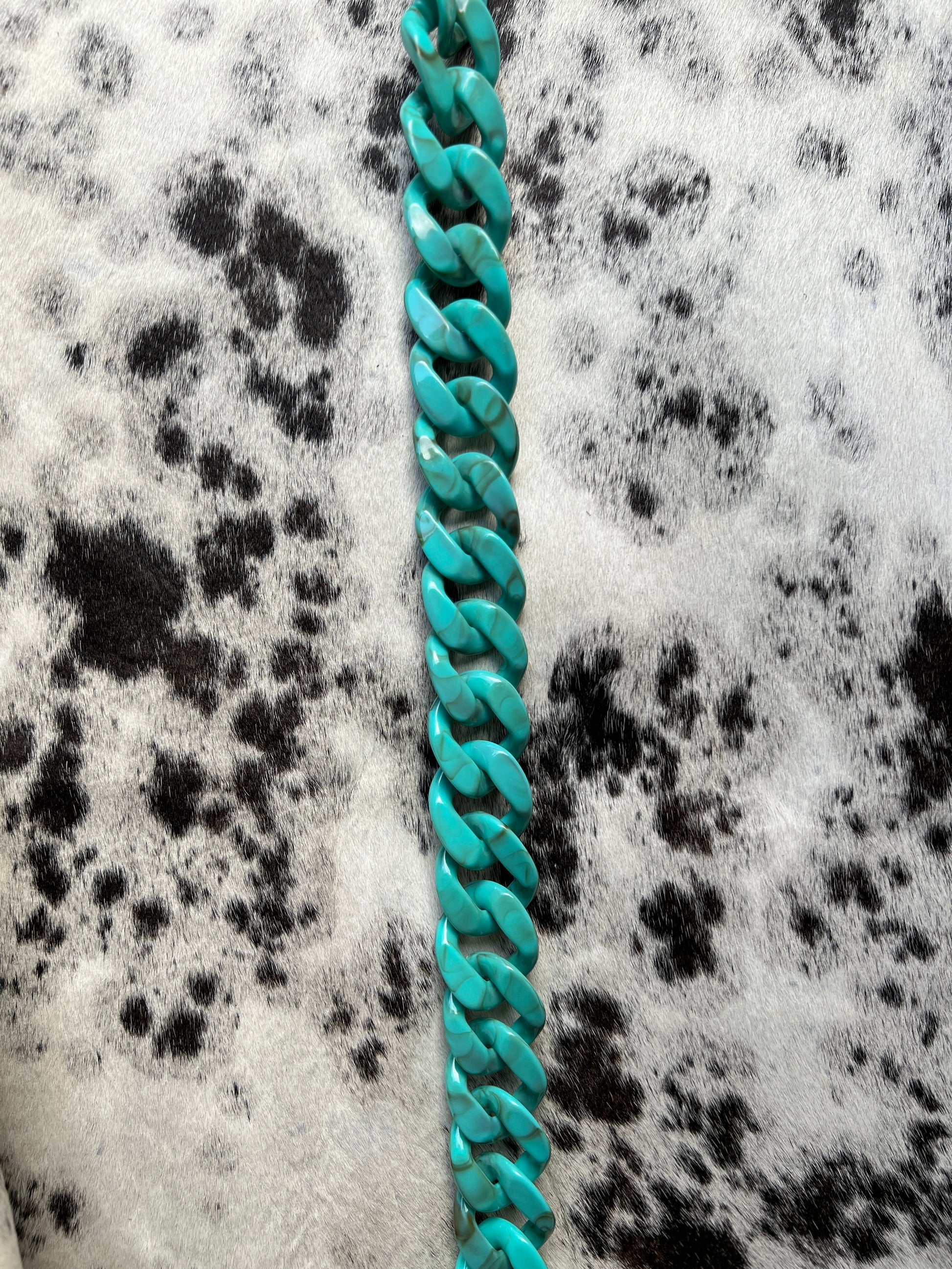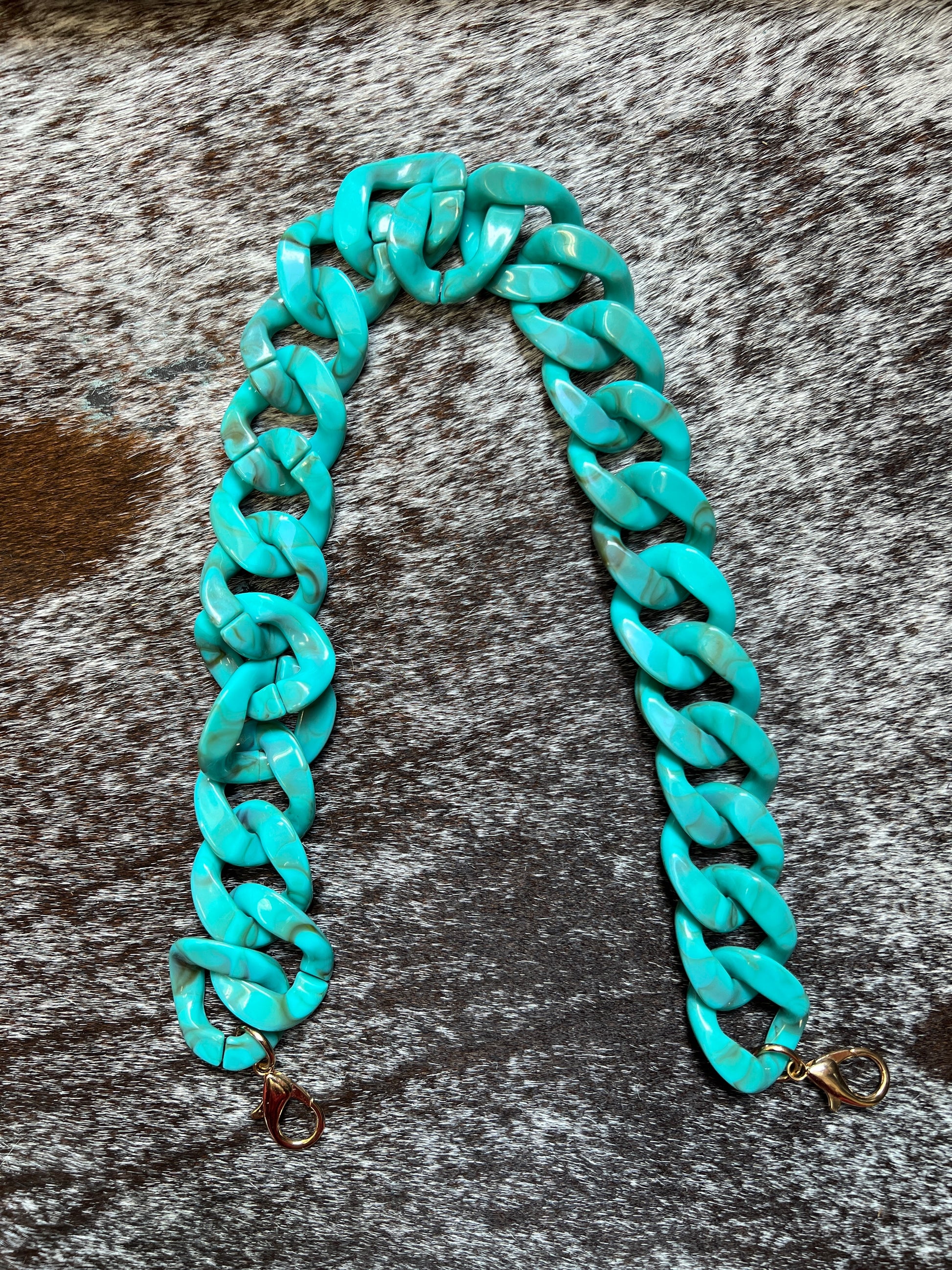 Elevate your handbag game with this eye-catching turquoise acrylic bag chain. Designed with oversized interlocking links, this statement strap adds a pop of color and a modern twist to any tote, crossbody, or shoulder bag. Lightweight yet durable, it’s comfortable to carry while giving your bag a chic, fashion-forward upgrade.