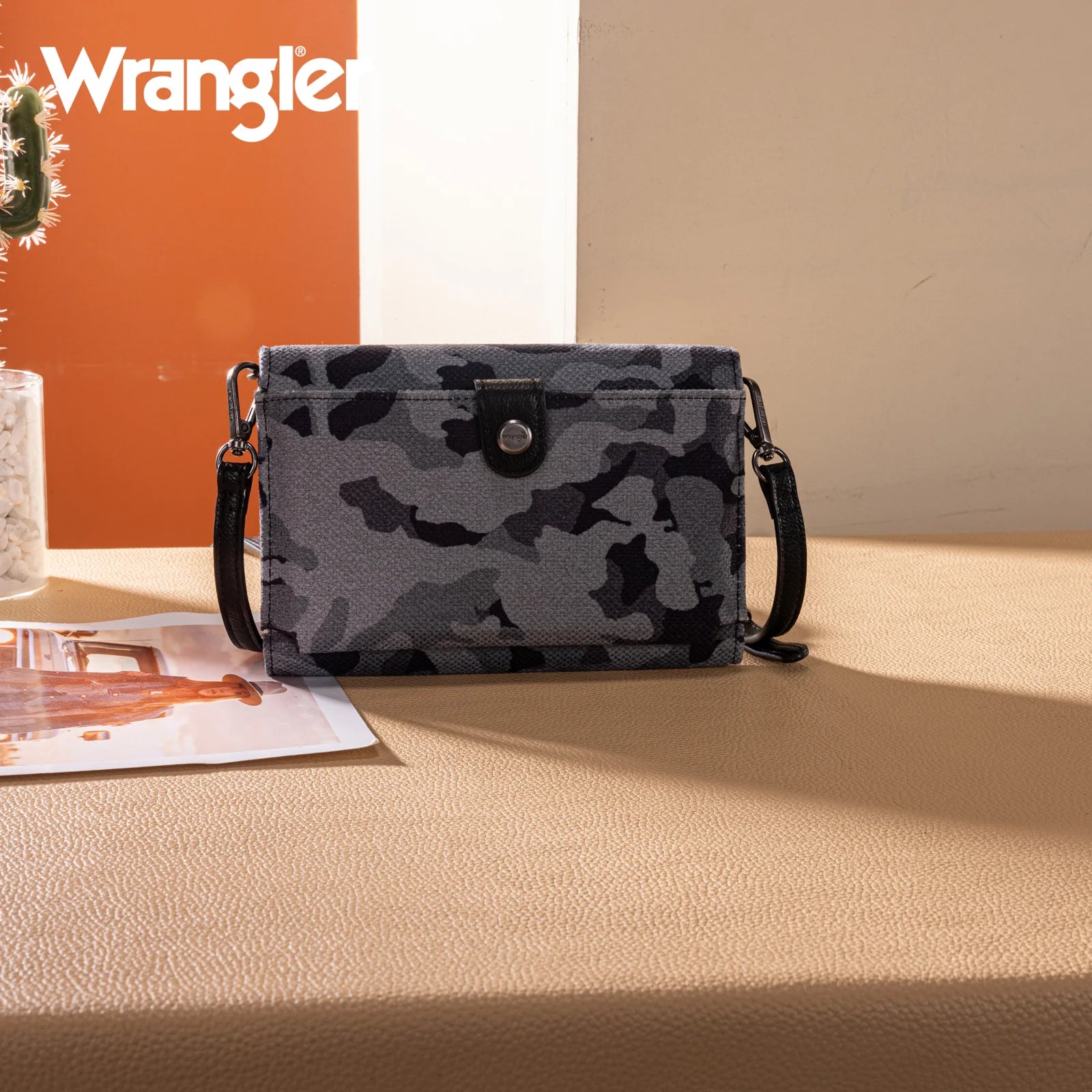 Take your look from casual to standout with the Wrangler Boardwalk Camo Convertible Clutch-Crossbody — a ruggedly stylish accessory built for versatility, western flair, and color options to match your mood.