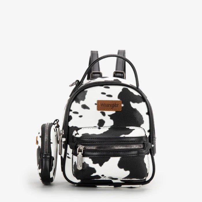 Wrangler Cow Print Mini Backpack – Trendy Faux Leather with Detachable Coin Purse