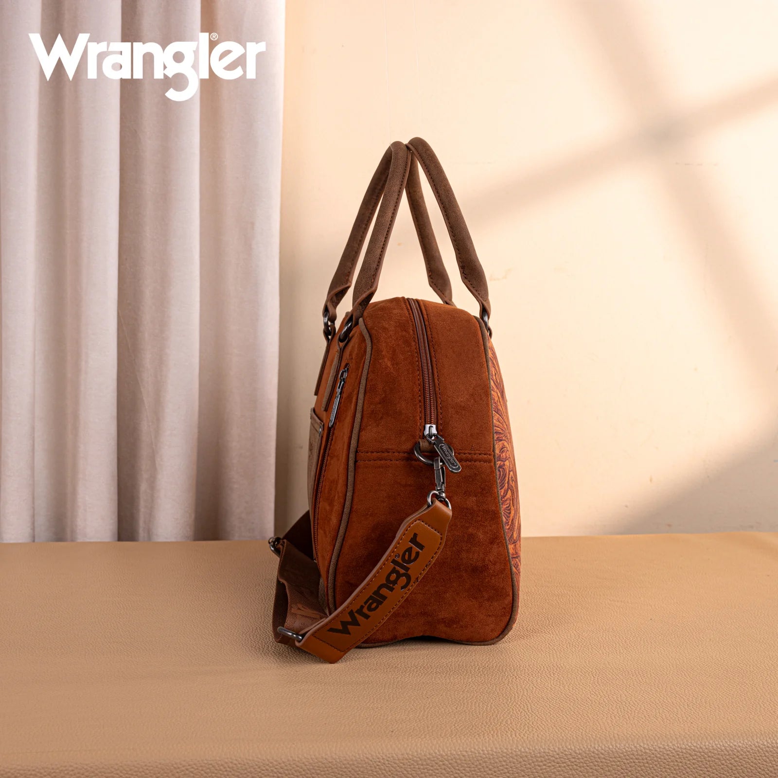Channel classic western charm with a touch of romance—this duffle-style handbag brings functionality and vintage-inspired flair into everyday use. With its floral pattern, structured silhouette, and convertible carrying options, it’s perfect for day trips, weekend getaways, or as a standout everyday bag.