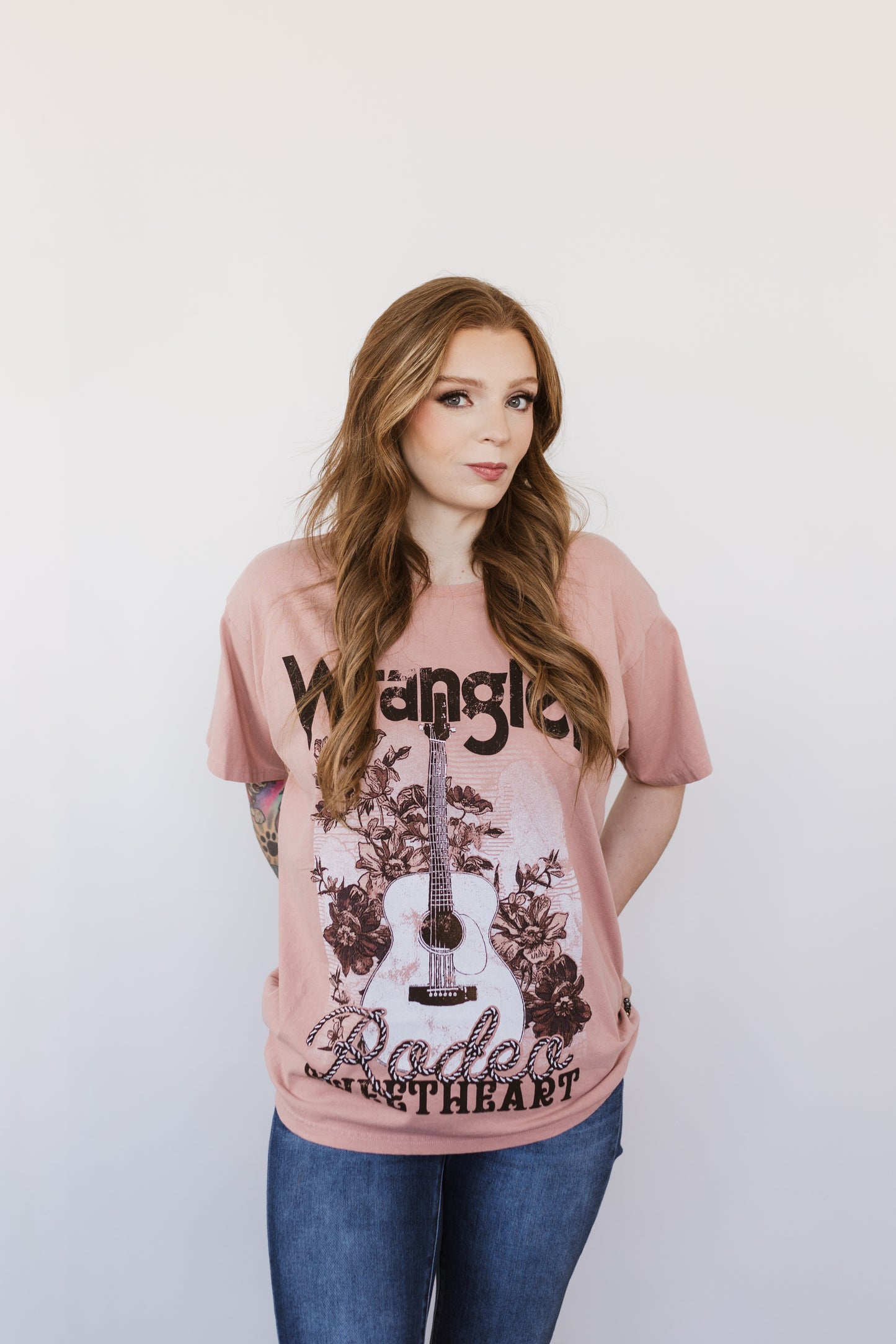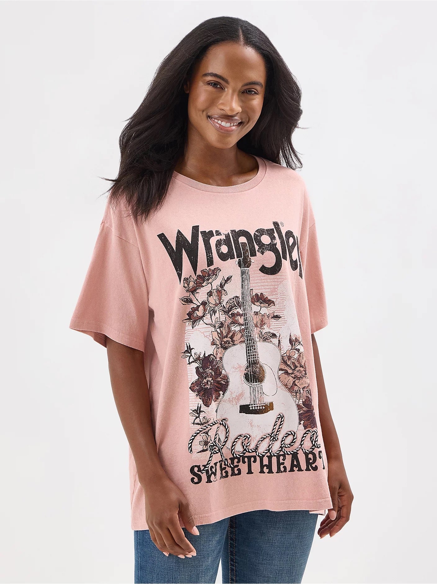 Wrangler Women’s Western Graphic Oversized Tee – Misty Rose